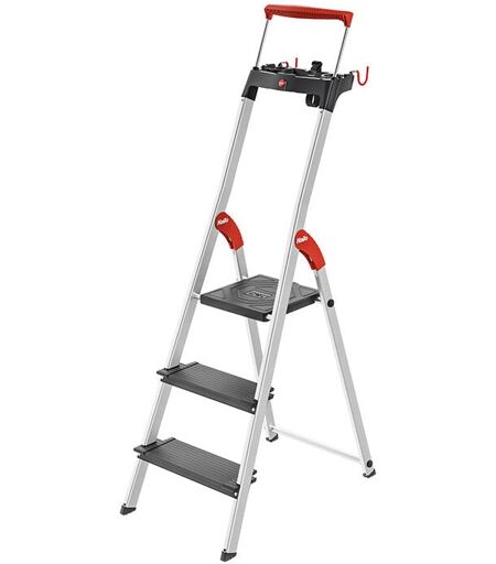Hailo - Escabeau de sécurité pliable en aluminium 3 marches larges L100