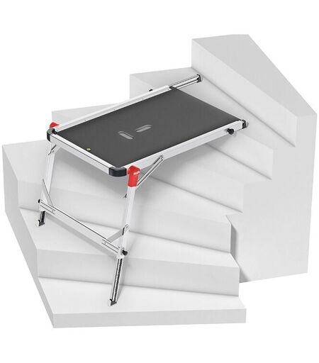 Description générale La plateforme de travail Hailo TP1 est une solution innovante et sécurisée, conçue pour faciliter vos travaux dans les escaliers. Elle peut servir de plateforme de travail ou de base pour tous les escabeaux et marchepieds Hailo jusqu'à 4 marches. Compatible avec la plupart des escaliers droits et en colimaçons, elle assure une utilisation polyvalente et sécurisée. Spécifications techniques Charge max : 150 kg Nombre de marches : 1 Matériau : Aluminium Dimensions pliées (H x L x P) : 93 x 75 x 6 cm Poids : 9 kg Dimensions des marches (L x P) : 57 x 90 cm Hauteur d'accès : 225 cm Dimensions au sol (L x P) : 120 x 75 cm Hauteur de marchepieds : 54 cm (minimum) à 80 cm (maximum) Compatibilité et accessoires Utilisable avec tous les escabeaux et marchepieds Hailo jusqu'à 4 marches Convient aux escaliers droits et en colimaçons Installation La plateforme est pré-assemblée, prête à l'emploi. Il suffit de la déplier et de l'ajuster à la hauteur souhaitée à l'aide des ...