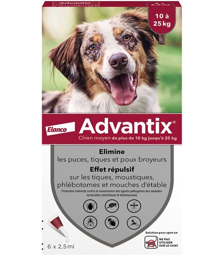 6 pipettes Advantix pour chien de taille moyenne, 10 à 25 kg