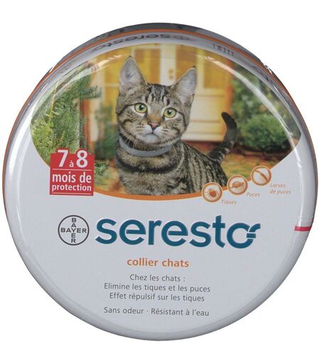 Affections à parasites sensibles au dimpylate.Chez les chats:Elimination des puces et des tiquesPrévention des nouvelles infestations par les puces et les tiques. Conseils d'utilisationUsage externe. Un collier par animal. Ajuster la longueur du collier de manière à pouvoir passer un doigt entre le cou et le collier. Couper le bout de collier en excès. Conditionnement1 collierIl est indispensable de demander l’avis de votre vétérinaire ou de votre pharmacien. Si les symptômes persistent, consultez votre vétérinaire. ...