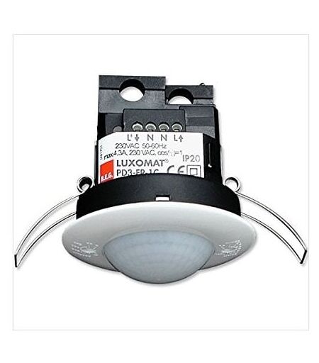 Description générale Ce détecteur de mouvement encastrable PD3-1C-FP de BEG Luxomat est conçu pour une installation au plafond et offre une détection circulaire à 360°. Il est idéal pour les espaces intérieurs tels que les cages d'escalier, les sas, les toilettes et les garages. Avec une sensibilité élevée, ce détecteur peut détecter même les mouvements les plus faibles, permettant une activation automatique de l'éclairage. Spécifications techniques Modèle : PD3-1C-FP Type de montage : Encastré Zone de détection : Circulaire 360° Hauteur de montage recommandée : 2,5 m Portée : 10 m (biais), 6 m (face), 4 m (assise) Puissance de coupure maximale : 2300 W Tension nominale : 230 V ± 10% Classe de protection : IP44 Température de fonctionnement : -25 °C à +50 °C Sensibilité : 10 à 2000 Lux Temporisation : 30 secondes à 30 minutes (mode impulsion) Compatibilité et accessoires Compatible avec tous les types de lampes courantes Peut être utilisé avec des relais pour d'autres appareils ...