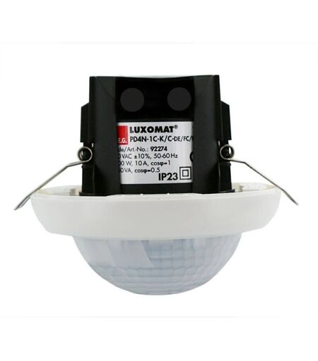 Détecteur de mouvement encastrable spécial couloir PD4N-1C-C-FP 360° – BEG 92274 – Automatisez vos couloirs avec précisionLe PD4N-1C-C-FP BEG 92274 est un détecteur de mouvement encastrable pour faux plafond, conçu pour les couloirs longs jusqu'à 2 × 10 mètres. Sa détection à 360° optimisée pour les zones étroites garantit une couverture précise et fiable. Grâce à sa fonction télécommandable, les réglages sont simples, rapides et accessibles sans démontage. Idéal pour les bâtiments tertiaires, ce capteur allie discrétion, performance et efficacité énergétique.Détecteur de mouvement plafond télécommandable spécial couloirUn canal pour la commutation de l‘éclairageCommutation au passage à zéro (Zero crossing switching)Système optique spécifique pour la détection de mouvements même faiblesD'autres fonctions sont programmables par une télécommande en optionDétection non interrompue de circuits parallèles de plusieurs détecteursPossibilité de commutation manuelle par ...