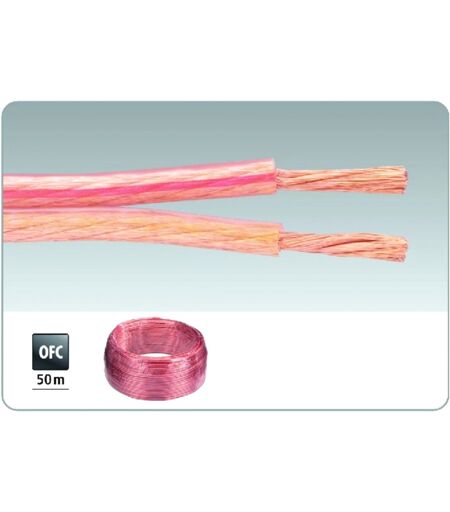 Câbles Haut-parleur: "HIGH QUALITY, HIGH FLEXIBLE": Bobine de 50 m ou 100 m, Isolant transparent avec repérage des conducteurs, Données techniques: Domaine utilisation: haut-parleurs, Longueur: 50 m, Couleur: Transparent, Conducteur interne: 2 x 2.5 mm2, Nombre de conducteurs: 2, Matériau: OFC, Colisage: rouleau, Poids: 3.5 kg, Autres caractéristiques: repérage conducteurs. rouge ...