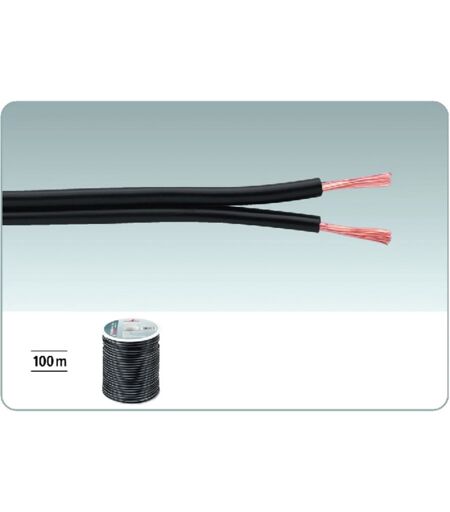 Câbles Haut-parleur: "STANDARD QUALITY": Bobine de 100 m, Repère des conducteurs, Données techniques: Domaine utilisation: haut-parleur, Longueur: 100 m, Couleur: noir, Diamètre câble: 2 x Ø 2.4 mm, Conducteur interne: 2 x 0.75 mm2, Nombre de conducteurs: 2, Matériau: cuivre, Colisage: bobine, Poids: 2.4 kg, Autres caractéristiques: repérage des conducteurs ...