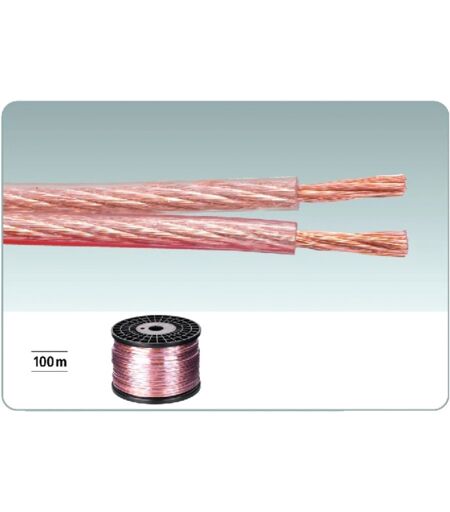 Câbles Haut-parleur: "ECONOMY QUALITY'': Bobine de 100 m, Conducteur en aluminium avec revêtement en cuivre, Isolant transparent avec repérage des conducteurs, Données techniques: Domaine utilisation: haut-parleurs, Longueur: 100 m, Couleur: Transparent, Conducteur interne: 2 x 2.5 mm2, Matériau: CCA, Colisage: rouleau, Poids: 4.46 kg, Autres caractéristiques: repérage conducteurs ...