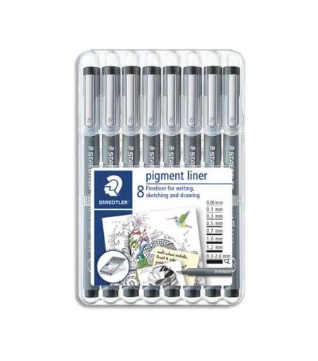 Feutres Staedtler - pointe calibrée 0,05/0,1/0,2/0,3/0,5/0,7/1,0/1,2/C2 - étui de 8 - noirs