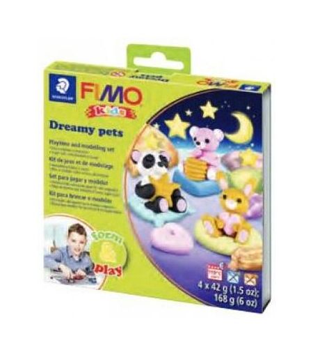 Les pains de pâte Fimo de ce kit ont été spécialement conçus pour les enfants. Certifiés CE et miscibles, ils seront parfaits pour laisser parler la créativité des plus jeunes.. FIMO kids Kit de modelage Form et Play, pâte durcissante au four, pour modeler des animaux fantastiques, particulièrement souple, adaptée aux enfants. contenu: 4 x pâte à modeler de 42 g, bâton de modelage, décor de jeu, 1 mode d'emploi pas à pas ...