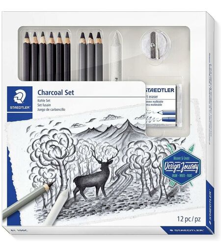 Boîte en carton contenant 6 crayons à dessin assortis, 3 crayons fusain assortis, 1 estompe, 1 gomme à effacer façonnable et 1 taille-crayon deux usages Crayon fusain de haute qualité Formulation spéciale de la mine contenant une proportion élevée de carbone et de charbon pour une large gamme de teintes noires les plus profondes Particulièrement adapté aux dégradés et au hachurage, ainsi qu’aux croquis et portraits expressifs Disponible en 3 degrés de dureté : S (doux), M (moyen), H (dur) Diamètre de la mine : environ 4,5 mm La teinte noire la plus profonde glisse doucement sur le papier Tracés reproductibles aux tirages Bois issu de forêts certifiées PEFC et gérées durablement Recommandation pour le taille-crayon : Taille-crayon double trou Mars 510 25 ou papier de verre 923 pour un résultat optimal Hauteur 20 Adapté à l'induction nein Poids 159 Convient au lave-vaisselle nein Taille de l'emballage 1 Longueur de l'emballage 20,50 Compatible avec les micro-ondes nein Poids sans ...