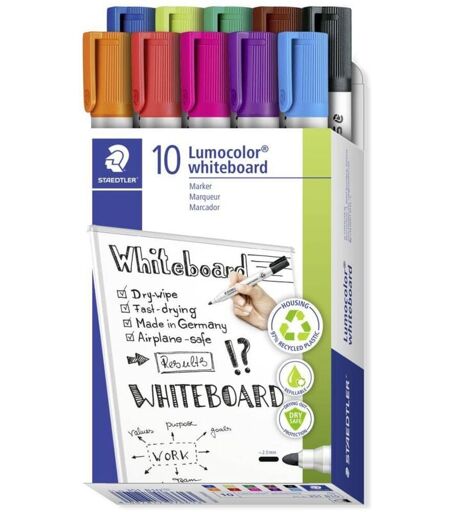 Lumocolor 351 351 B10 Marqueur tableau blanc rouge, orange, lilas, bleu, vert, marron, noir, vert clair, bleu - Staedtler