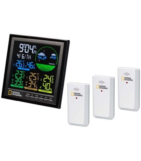 Cette station météo écran couleur vous montre toutes les données météo sur un même écran Vous verrez donc les températures et humidités intérieures et extérieures ainsi que l'heure exacte transmise par le radio pilotage. La date est également affichée. Il y a une double alarme avec fonction répétition. Caractéristiques Écran LCD couleur Mesure température (°C/°F) et humidité Affichage de l'heure et de la date Radio pilotage par le signal DCF Prévisions météo Double alarme avec fonction répétition 3 capteurs maxi (3x inclus!) Fixation murale ou position sur table Alimentation: adaptateur secteur Caractéristiques des capteurs Mesures des températures et humidités Fixation murale ou à pose sur table 3 canaux réglables Distance de transmission: 30 m Alimentation: 2x piles AAA par capteur (non incl.) ...