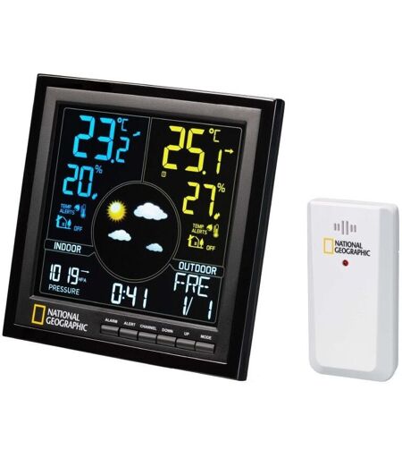 Cette station météo écran couleur vous montre toutes les données météo sur un même écran Vous verrez donc les températures et humidités intérieures et extérieures ainsi que l'heure exacte transmise par le radio pilotage. Pour le Royaume Uni, l'heure EU est automatiquement ajustée avec -1h. La date est également affichée. La station météo indique les prévisions météo pour 12-24h prochaines heures, la pression atmosphérique, une double alarme avec fonction répétition. Caractéristiques Écran LCD couleur Mesure température (°C/°F) et humidité depuis le thermo-hygro intégré dans la base Température et humidité d'une autre pièce ou extérieur par le biais de la sonde sans fil Affichage de la pression en hPa Affichage de l'heure et de la date Prévisions météo Double alarme et fonction répétition 3 capteurs maximum (1x inclus) Fixation murale ou position sur table Alimentation: Adaptateur secteur (incl.) Caractéristiques des capteurs Mesures des températures et humidités Fixation murale ou à ...