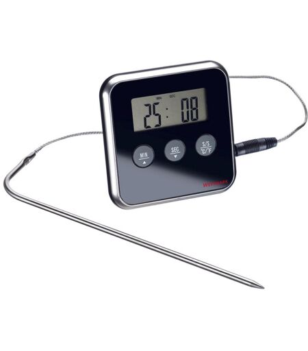 Un thermomètre pour cuire parfaitement la viande ! Thermomètre à sonde - Plage de mesure : de 0°C à +250°C Commutable sur chronomètre - Minuterie réglable Fonction alarme quand la viande est cuite Écran à affichage digital : lecture facilitée Aimant de fixation pratique pour le four Fonctionne avec 1 pile AAA 1,5V incluse ...