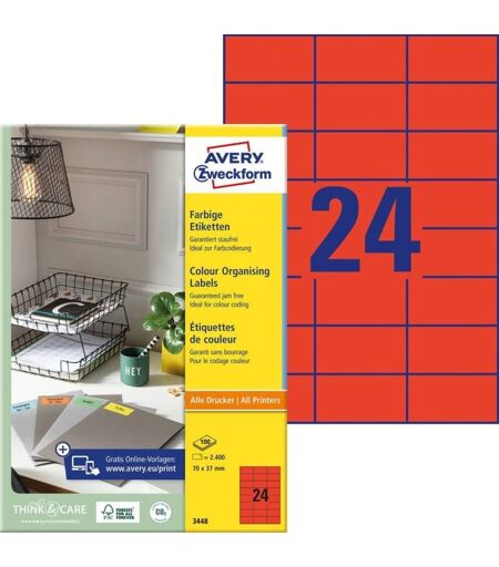 Avery Zweckform - Avery-Zweckform 3448 Etiquette universelles 70 x 37 mm papier rouge 2400 pc(s) fixation permanente imprimante à jet d'e