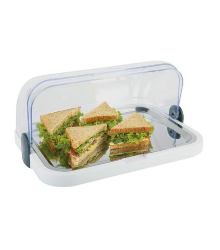 coque en plastique ABS, cloche transparente avec ouverture coulissante sur les deux côtés, plateau en acier inoxydable, 2 blocs réfrigérants, dimensions: (L)440 x (P)320 x (H)205mm (9100) ...