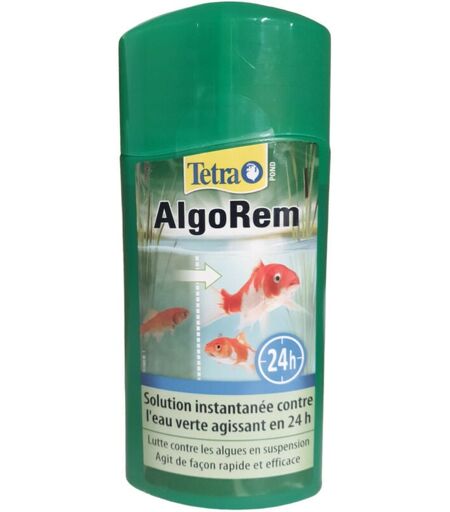 AlgoRem 500 ml Tetra Pond pour bassin Tetra Pond AlgoRem est un traitement anti algues qui combat l'eau verte de vos bassins. Il agit en changeant rapidement les algues en suspension responsables de l'eau verte, afin que vous gardiez une eau transparente plus longtemps. Ce produit respecte l'équilibre biologique de l'eau du bassin et est sans danger pour vos plantes et poissons. Vous pourrez observer son efficacité au bout de quelques heures seulement. Attention, ce produit ne convient pas aux esturgeons. agit en 24 heures 500 ML pour 10000 litres d'eau d'un bassin poids 738 g AlgoRem 500 ml Tetra Pond pour bassin Tetra Pond AlgoRem est un traitement anti algues qui combat l'eau verte de vos bassins. Il agit en changeant rapidement les algues en suspension responsables de l'eau verte , afin que vous gardiez une eau transparente plus longtemps. Ce produit respecte l'équilibre biologique de l'eau du bassin et est sans danger pour vos plantes et poissons. Vous pourrez observer son ...