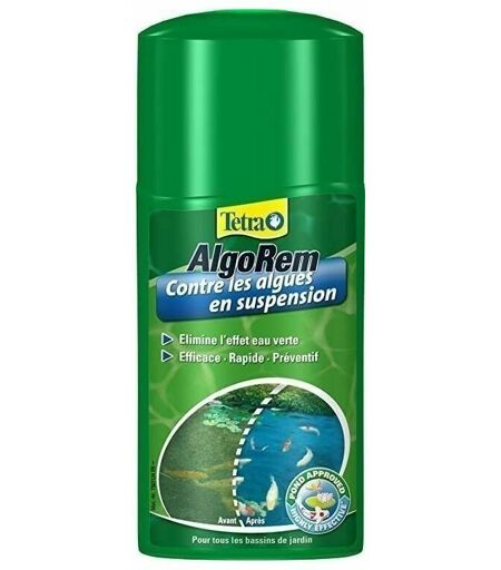 Dimensions Hauteur (en cm) 17,60 Longueur (en cm) 7,50 Profondeur (en cm) 4 Autres caractéristiques Informations complémentaires Traitement anti-algues qui combat l'eau verte des bassins , Respecte l'équilibre biologique de l'eau du bassin , Sans danger pour les plantes et poissons , Efficacité visible en quelques jeures , Ne convient pas aux esturgeons Poids (en kg) 0,30 Produit anti eau verte Algorem 250ml ...