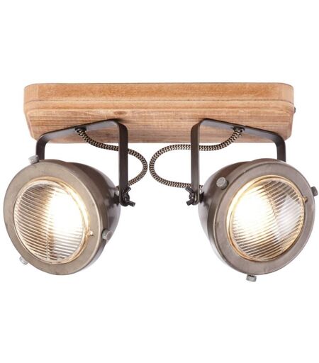 Brilliant - lampe Carmen Wood faisceau spot 2 flg acier brûlé / bois 2x PAR51, GU10, 5W, adapté aux lampes à réflecteur (non incluses) Échelle a ++ à