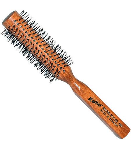 Round-Styler pro-line en bois de hêtre local, manche ergonomique quatre faces. Brins en nylon résistant à la chaleur avec bouts ronds non perlés. ...