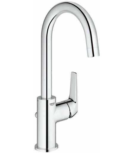 Mitigeur de lavabo avec vidage montage monotrou levier de commande métallique bec rotatif haut GROHE Longlife cartouche en céramique 28 mm GROHE EcoJoy mousseur 5,7 l/min GROHE StarLight finition chromée GROHE QuickFix système de montage rapide garniture de vidage DN 32 flexibles de raccordement souples ...