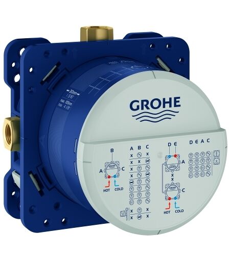 Meuble bas encastré Grohe 35604000 3 sorties 1/2" 2 entrées inférieures à 1/2" Profondeur d'installation 7 5-10 5 cm Unité de raccordement en laiton à faible dézincification Bouchon de pression pré-assemblé boîtier d'installation stable et capuchon de protection points de fixation préparés pour la construction humide et sèche manchon d'étanchéité sans kit de montage final ...