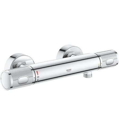 Mitigeur de douche thermostatique PRECISION FEEL GROHE 34790000 - chrome : Colour: Chromé Montage mural apparent GROHE CoolTouch Minimise les risques de brûlures GROHE Brillance Longue Durée Brillance éclatante année après année GROHE TurboStat Régulation de la température quasi-instantanée et sécurité anti-brulûres en cas de coupure d'eau froide GROHE ProGrip avec surface moletée GROHE SafeStop butée à 38°C Poignée de débit avec touche éco et butée éco réglable séparément GROHE Économie d?eau Consommation d'eau réduite, jet parfait Robinet d'arrêt intégré Tête céramique 1/2", 180° Départ de douche 1/2" par le dessous Clapets anti-retour intégrés Filtres intégrés Raccords en S Rosace en métal Protégé contre les retours d'eau ...