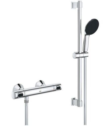 Precision Flow Ensemble de douche - mitigeur thermostatique - avec ensemble de douche - 60 cm - douchette ronde - 1 type de jet - flexible de - Grohe