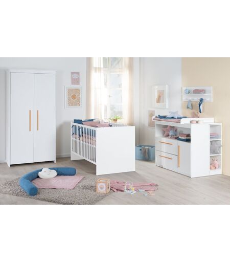 Chambre Bébé 'lilo' - Lit Évolutif 70x140 + Table À Langer + Armoire 2 Portes - Blanc