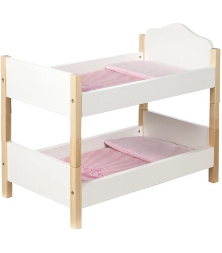 Roba Lit Superposé De Poupée Scarlett En Bois + 2 Oreillers Et 2 Couettes Roses - Lit Double De Poupée - Blanc / Naturel