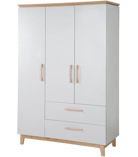 Points forts : L'armoire "Caro" offre un grand espace de rangement dans la chambre d'enfant ou de bébé grâce à ses trois portes dotées de poignées en bois massif de haute qualité. (HxLxP) : 200 x 134,5 cm x 55 cm. La technologie "soft close" intégrée dans l'armoire garantit une fermeture en douceur des portes et des tiroirs. Les étagères, les tiroirs et la tringle à vêtements assurent l'ordre dans la chambre des enfants et des bébés. L'armoire à 3 portes, gris clair, à portes battantes, avec cadre de socle et panneau supérieur en décor "chêne doré", présente un panneau supérieur flottant comme point fort du design. Avec d'autres meubles pour bébés et enfants de la série "Caro", il est possible de meubler une chambre d'enfant ou de bébé complète et élégante avec des meubles système qui grandissent avec l'enfant. La garde-robe pour bébé est développée en Allemagne, produite dans l'UE et porte le label de qualité Ange bleu. Corps et façades gris clair. Cadre de la plinthe et panneau supérieur en décor "chêne doré". Matières : Carcasse : panneau de particules (mélaminé) Façades : aggloméré (mélaminé) Panneau arrière : HDF Étagères : Panneau de particules (recouvert de mélamine) Poignées : hêtre massif Portes à fermeture amortie : 3 Tiroirs à fermeture amortie : 2 Tringles à vêtements : 1 Étages : 5 Décor : Carcasse : gris clair Cadre : chêne doré Tranche d'âge : à partir de 0 mois Dimensions et poids : L x P x H : 134,5 x 55,0 x 200,0 cm 145,00 kg Détails du produit / Informations complémentaires : L'armoire "Caro" offre un grand espace de rangement dans la chambre d'enfant ou de bébé grâce à ses trois portes dotées de poignées en bois massif de haute qualité. La technologie de fermeture douce des portes et des tiroirs assure une fermeture douce et silencieuse des portes et des tiroirs. Les deux tiroirs sont également dotés de poignées en bois massif de haute qualité et, avec les quatre étagères et une étagère supplémentaire au-dessus de la tringle à vêtements en métal, ils permettent de garder l'armoire des enfants bien rangée. Par exemple, les chaussettes, les sous-vêtements, les jouets des enfants ou les livres trouvent leur place dans les tiroirs. L'armoire à 3 portes, gris clair, à portes battantes, avec cadre de socle et panneau supérieur en décor "chêne doré", présente un panneau supérieur flottant comme point fort du design. Grâce à sa hauteur de 2 m, l'armoire grandit avec vous jusqu'à l'âge adulte et peut également être utilisée comme armoire de chambre de jeunes. L'élégante armoire à 3 portes peut être parfaitement complétée par d'autres meubles pour bébés et enfants de la série "Caro" afin de créer une chambre de bébé ou d'enfant entièrement meublée avec des meubles qui grandissent avec l'enfant. L'armoire pour chambre de bébé a été développée en Allemagne, produite dans l'UE et est facile à assembler. L'armoire "Caro" est certifiée eph et porte le label de qualité Blue Angel, qui garantit que tous les matériaux utilisés répondent aux... ...