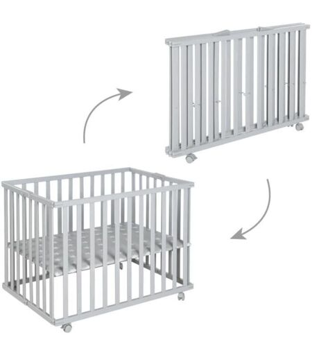 Roba - Parc bébé pliable little stars - 75 x 100 cm - Hauteur réglable - 4 Roues freinées - Bois Laqué Gris Taupe - Motif