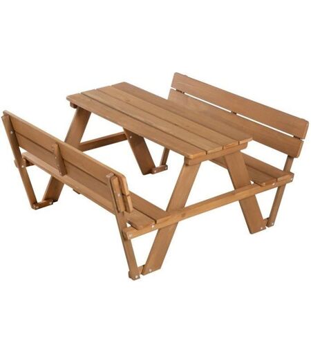 Cette table pique-nique en bois massif teinté teck, résistante aux intempéries, offre une expérience sûre et agréable pour les enfants, que ce soit dans le jardin, sur la terrasse ou même à l'intérieur de la maison. Avec des dimensions de H 50,5 x L 107 x P 89 cm, elle est conçue pour accueillir les enfants à partir de 12 mois, avec une hauteur d'assise des bancs de 27 cm. La table et les bancs sont reliés de manière à assurer une stabilité optimale, tandis que les coins arrondis et la construction solide garantissent une sécurité maximale, évitant tout risque de basculement et de coincement des petites mains. Certifiée conforme aux normes de sécurité, elle peut supporter jusqu'à 50 kg de poids sur le plateau et les bancs. Cette table est compatible avec divers accessoires de la gamme Outdoor +, tels qu'un parasol ou des coussins d'assise, offrant ainsi une polyvalence supplémentaire. Livrée démontée avec des instructions de montage claires, elle est facile à assembler. Les matériaux utilisés sont régulièrement contrôlés et certifiés sans substances nocives, assurant ainsi une qualité fiable et sûre. Les surfaces écologiques sont faciles à nettoyer et lavables, garantissant une durabilité accrue. La table pique-nique "Picknick for 4" est un choix idéal pour créer des souvenirs inoubliables lors des activités en plein air. ...