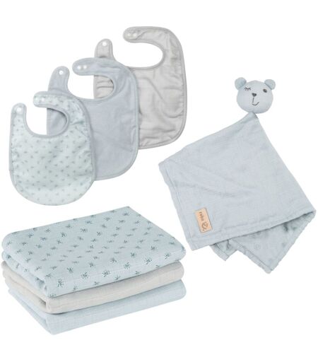 Roba Coffret Bébé Lil Planet - 7 Pcs - 3 Bavoirs + 1 Doudou + 3 Langes - Cadeau De Naissance - Bleu Clair / Gris