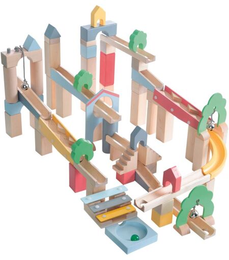 Roba Circuit De Billes En Bois - 60 Pièces Avec Ensemble De Construction De Paysage De 20 Pièces - Coloré