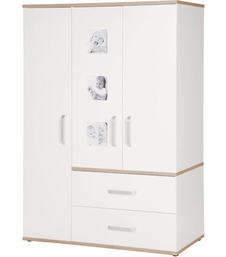 Roba Armoire Bébé "Pia" 3 Portes Et 2 Tiroirs - Blanc/Décor 'chêne San Remo