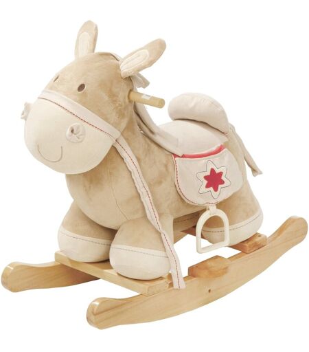 Roba - Âne À Bascule En Bois Et Peluche Avec Étriers Selle Et Bride - Marron / Motif Rouge