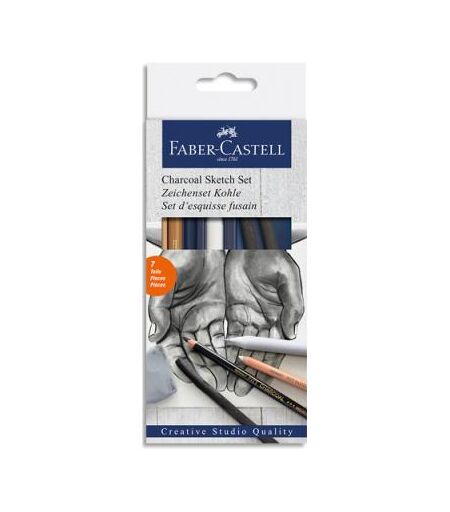 Set d'esquisses fusain Faber Castell comprenant fusains, crayons blanc, gomme et estompe