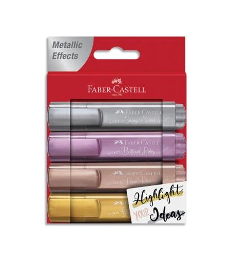 Faber Castell Pochette de 4 surligneurs Faber Textliner 46 Métallique - Coloris : rose poudré, or, argent, rubis