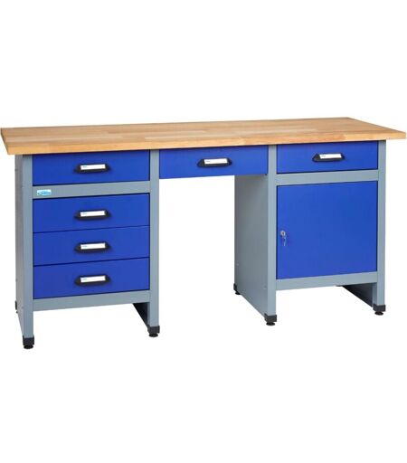 Kupper - Küpper établi modèle 12577, l. 170 cm, 1 porte, 6 tiroirs, bleu outremer