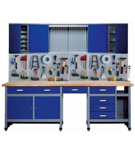 Kupper - Küpper établi-set modèle 70412-7, l. 240 cm, établi, élément haut, panneau perforé, bleu outremer