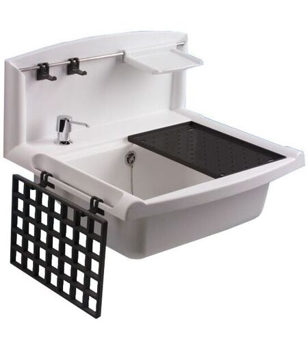Description générale Le lavabo fonctionnel Multiset ABU, mesurant 55x45 cm, est conçu en plastique résistant aux chocs et aux intempéries. Avec une capacité d'environ 12 litres, il est idéal pour les environnements domestiques et collectifs. Sa paroi arrière anti-éclaboussures et son garde-corps en acier inoxydable garantissent une utilisation pratique et sécurisée. Spécifications techniques Matériau : Polypropylène résistant aux chocs Couleur : Blanc Dimensions : 55 x 45 cm Capacité : Environ 12 litres Garantie : 10 ans sur la résistance à la rupture Compatibilité et accessoires Compatible avec : Robinets de lavabo standard (diamètre 35 mm) Accessoires disponibles : Distributeur de savon, étagère (en option) Installation Fixation avec deux supports muraux Kit de montage avec suspensions invisibles inclus Marquages pour tous les diamètres d'installation requis Utilisation Facile à nettoyer Idéal pour un usage domestique et collectif Comprend un trop-plein, une vanne de vidange G1 ½ et ...