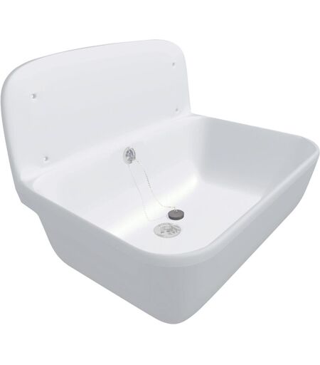 Description générale Le Poste d’eau pour fixation murale Sanit (Groupe Nicoll/Aliaxis) est idéal pour les garages et les locaux d'entretien. Fabriqué en polypropylène blanc, il se distingue par sa légèreté et sa facilité d'installation. Sa conception permet un entretien aisé grâce à des surfaces lisses qui résistent aux salissures. Spécifications techniques Matériau : Polypropylène blanc Dimensions : Hauteur 395 mm (partie supérieure 175 mm), Largeur 495 mm, Profondeur 345 mm Capacité : Environ 13,5 litres Résistance : Chocs, gel, températures élevées, UV et produits chimiques courants Garantie : 10 ans sur la résistance à la rupture Compatibilité et accessoires Inclus : Trop-plein, bonde DN 40 (1 1/2'), tamis, bouchon avec chaîne et kit de fixation Grille rabattable optionnelle (référence 60002000099) Installation Le poste est conçu pour une installation murale, avec 4 trous de fixation situés en partie supérieure, ce qui facilite sa mise en place rapide et sécurisée. Utilisation ...