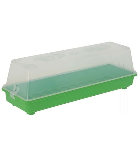 Apparence Coloris Vert Dimensions Hauteur (en cm) 19 Longueur (en cm) 58 Profondeur (en cm) 19 Autres caractéristiques Matériau principal PVC rigide Matériau secondaire Polycarbonate (couvercle) Utilisable en Intérieur et extérieur Utilisation conseillée Boutures et semis Petite serre de bouturage et de germination Romberg extra longue de dimensions 58 x 19 x 19cm. Cette petite serre non-chauffante est fabriquée en plastique de qualité alimentaire sans BPA et 100% recyclable. Cette longue mini-serre dispose d'un couvercle en polycarbonate incassable, transparent équipé de 2 clapets coulissants manuels. ...
