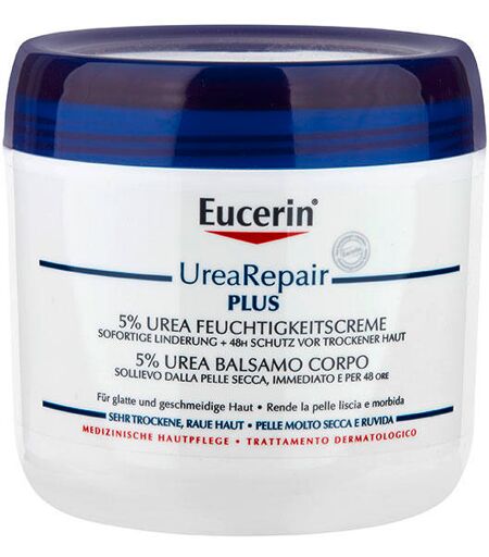 La crème pour le corps hydrate et lie intensivement. Apaise immédiatement la peau grâce à sa consistance crémeuse et protège contre les sensations de tension et la surface rugueuse de la peau pendant 48 heures. La crème hydratante Eucerin UreaRepair PLUS 5% se caractérise par une agréable texture crémeuse. Il contient le complexe Repair PLUS, unique et adapté à la peau : l'urée et d'autres facteurs naturels d'hydratation hydratent et lient intensivement, assurant ainsi le maintien de l'hydratation saine de la peau. Les céramides renforcent la barrière physiologique de la peau afin que l'humidité ne puisse pas s'échapper aussi rapidement. Les ingrédients spéciaux rétablissent l'équilibre naturel des lipides (graisses) et de l'hydratation de la peau. Application : Appliquez généreusement sur la peau nettoyée et séchée plusieurs fois par jour, selon les besoins. Massez doucement la lotion sur la peau jusqu'à ce qu'elle soit complètement absorbée. La peau est exposée à des facteurs tels que le climat, les nettoyages agressifs et le vieillissement naturel. Cela peut entraîner une perte d'hydratation et donc des symptômes de peau sèche : La peau est inconfortablement rugueuse, tendue, démange ou a tendance à s'écailler. Les produits de la série de soins UreaRepair sont enrichis en urée et autres facteurs naturels d'hydratation (NMF) - pour un apport intensif d'humidité. Eucerin UreaRepair PLUS apaise immédiatement les signes de la peau sèche grâce à son complexe unique Repair PLUS et offre une protection longue durée de 48 heures. Eucerin UreaRepair ORIGINAL vous offre un soin à l'urée riche et éprouvé. Tous les produits sont testés dermatologiquement et sont également idéaux pour le soin de la peau sèche chez les personnes âgées ainsi que pour accompagner le traitement de diverses maladies telles que la kératose pilaire ou le diabète. ...