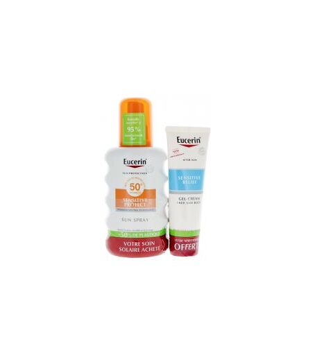Eucerin Sun Protection Sensitive Protect Spray SPF50+ 200 ml + Relief Gel-Crème Après-Soleil 50 ml Offert - Lot 2 produits dont 1 offert