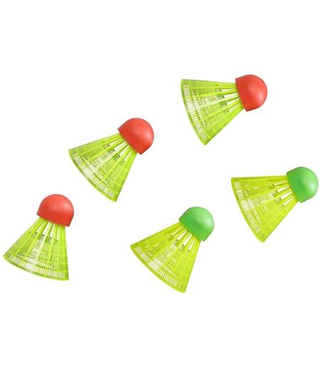 Volants de rechange pour set de Badminton HS-22 - - Set de 5 volants super rapides pour Speed Badminton de type Hudora HS-22 ou similaire. - Se set se compose de deux volants 'Control" et de trois volants "Speed". - Ils sont résistant à un vent faible à moyen et sont adapté à tous jeux rapides, où les adversaires sont assez éloignés l'un de l'autre. - - Couleurs : Néon orange et jaune (Speed) et Vert et jaune (Control) ...
