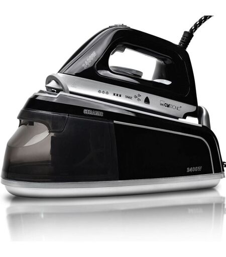 Centre de centre de repassage vapeur Clatronic avec fer à vapeur de fer à vapeur 3.5 bars de fer à vapeur avec semelle Superglide et réservoir d'eau