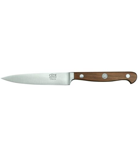 Couteau d'office 10cm Franz GUDE Couteau professionnel forgé à la main à partir d'une seule pièce d'acier trempé inox. Manche en bois de cerisier Fabriqué à Solingen en Allemagne. Affûté à la main, excellent tranchant. Les couteaux Franz Güde comblent toutes nos attentes envers le fabricant allemand. Un fini irréprochable, un tranchant d'excellente qualité et un parfait équilibre en main! ...