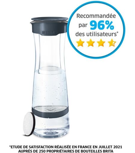 La garantie d'une eau pure au quotidien, c'est la promesse de Brita et sa bouteille filtrante Fill&Serve; Mind. Conçue pour votre santé Avec la bouteille filtrante Fill&Serve; Mind, Brita signe un incontournable de vos repas. En filtrant le chlore et les impuretés de l'eau du robinet, elle vous débarrasse des odeurs et des goûts en quelques instants grâce à la technologie exclusive concentrée dans ses disques filtrants. Spécialement conçue pour les boissons froides, la carafe filtrante Fill&Serve; Mind concentre toute l'innovation de Brita pour vous servir au quotidien. Ses disques filtrants vous assurent 150 litres d'eau filtrée, autrement dit quatre semaines de performance pour une eau pure, un goût agréable et des repas sains. C'est résolument la solution économique et écologique pour toutes vos boissons ! Une solution astucieuse Grâce à un design élégant signé Brita, votre carafe Fill&Serve; Mind dispose d'un poids plume pour être transportée facilement, tandis que ses matériaux sont ultra-résistants pour s'adapter à votre quotidien : elle résiste aux chutes, aux chocs et aux pressions pour vous garantir une eau filtrée en toutes circonstances. Grâce à toute l'innovation de Brita, la carafe filtrante Fill&Serve; Mind vous offre une capacité d'eau filtrée de 1,3 litre pour accompagner tous vos repas. Sa technologie Brita Memo, quant à elle, vous indique grâce à un voyant lumineux lorsqu'il est temps de changer le disque filtrant de la bouteille. C'est l'accessoire idéal de vos repas et vos boissons ! ...