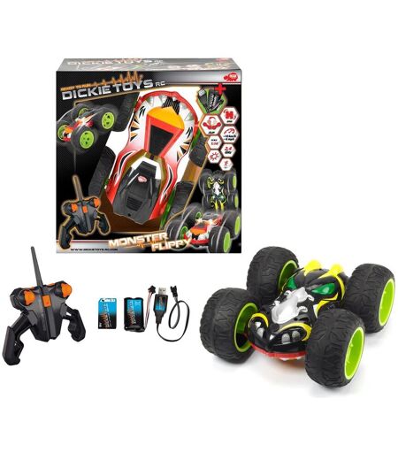 Dickie 201119031 RC Monster Flippy, RTR Le RC Wild Flippy de 25 cm de haut est équipé d'un système de radiocommande à 2 canaux et d'une fonction de conduite et de rotation complète. Le Wild Flippy a des yeux brillants et une fonction de retournement. Le véhicule est fabriqué à l'échelle 1:14 et est disponible avec la fréquence 40 MHz. Les piles pour l'émetteur 1x 9V 6F22 + pour le récepteur (RX) 1x 7,2 V Ni-MH Power Pack + GS Charger sont déjà incluses.! Details 2 canaux FS Lumière Fonction de rotation et de basculement 40 MHz vitesse : jusqu'à 10 km/h Dimension 1:14 Longueur ca. 25 cm À partir de : 6 ans ...
