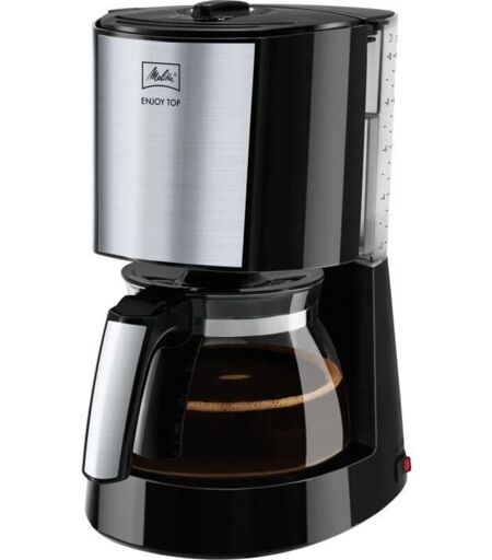 La cafetiere filtre MELITTA Enjoy Top Glass Noir/Acier brossé 1017-04 vous permet de régler l'intensité du café grâce a la fonction AromaSelector®. Son porte-filtre pivotant amovible est compatible lave-vaisselle et son systeme anti-gouttes évite les taches. Elle peut préparer jusqu'a 15 tasses et possede un réservoir a eau transparent avec indicateur externe du niveau d'eau. ...